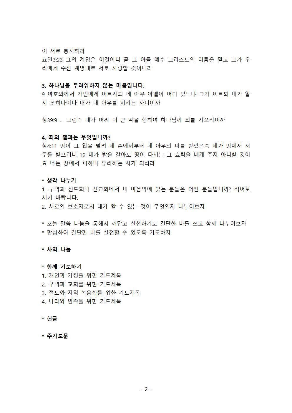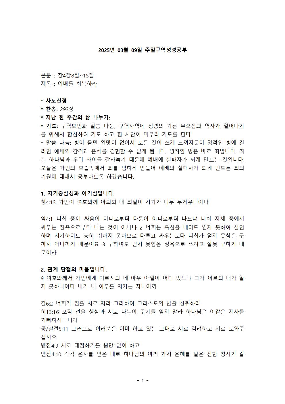 3월 9일 구역성경공부